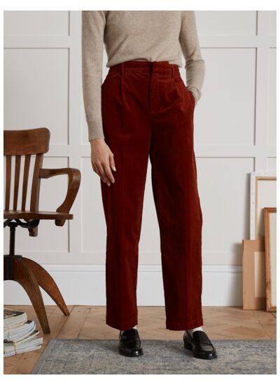 Le Pavélours Pince est fabriqué dans un tissu velours de qualité, avec une coupe droite et des pinces à l’avant pour un ajustement précis. Il dispose d’une fermeture discrète et de poches latérales pratiques.