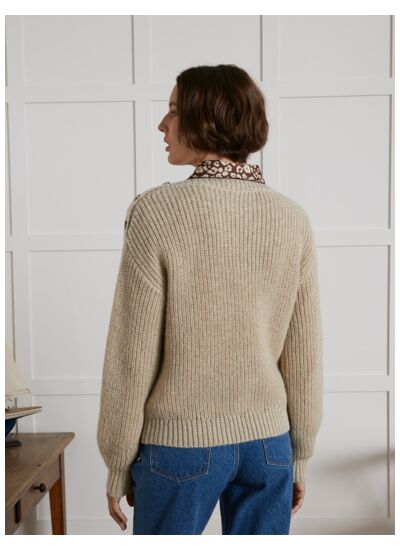 Fabriqué en maille fine, ce pull présente une finition soignée avec des boutons décoratifs sur le devant. Sa coupe féminine et ses manches longues en font un vêtement polyvalent, idéal pour les saisons intermédiaires ou pour superposer en hiver.