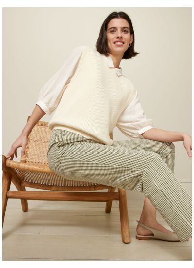 Confectionné dans une laine de qualité, ce pull offre une texture douce et chaleureuse, idéale pour les saisons fraîches. Sa coupe soignée met en valeur la silhouette féminine tout en garantissant une liberté de mouvement appréciable. Facile à associer, il se porte aussi bien avec un jean qu’une jupe pour un look décontracté ou plus habillé.