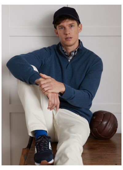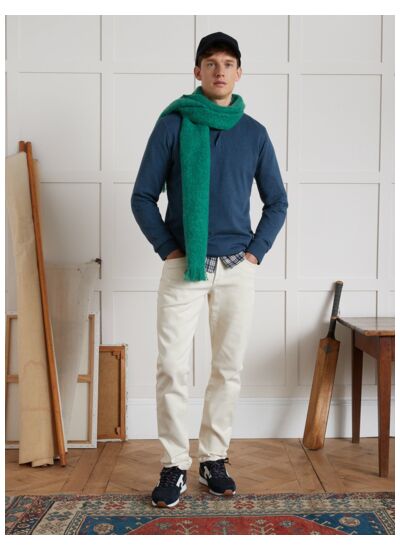 Pull homme Mont Bout, 100% coton, maille fine. Col rond, manches longues, coupe droite. Disponible en plusieurs coloris classiques. Lavage en machine à 30 degrés recommandé.