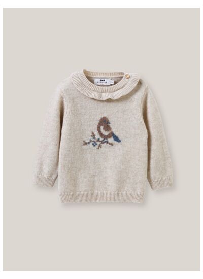 Ce pull en maille fine présente un motif oiseau délicatement brodé, apportant une touche ludique et élégante à la tenue de votre bébé. Sa coupe ajustée garantit liberté de mouvement tout en assurant une silhouette soignée. Léger mais chaud, il s’adapte parfaitement aux variations de température, idéal pour la saison 24H.