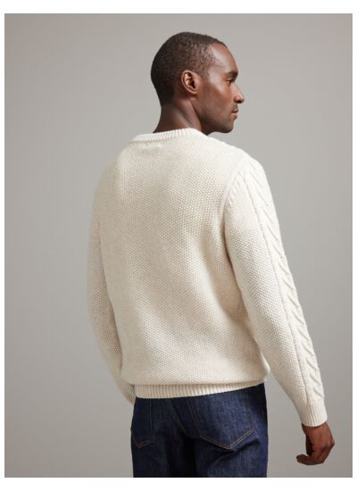 100% coton, maille torsadée, col rond, manches longues, coupe ajustée. Disponible en plusieurs coloris saisonniers. Lavage en machine à 30 degrés recommandé.