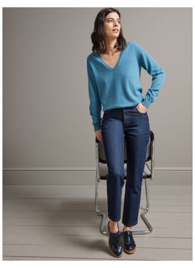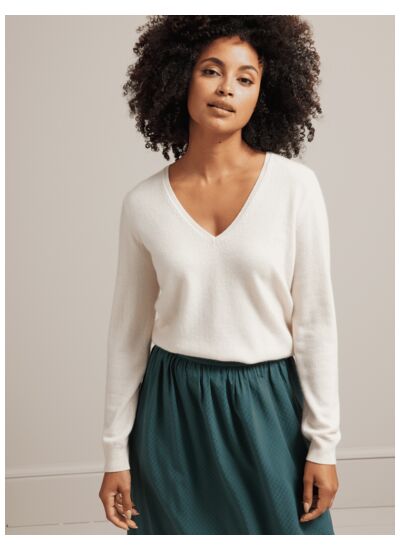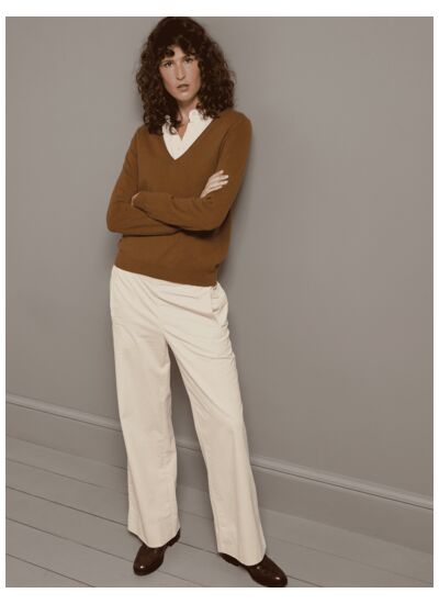 Confectionné dans un cachemire de qualité, ce pull V Cyrillus offre une texture légère et chaude, idéale pour les journées fraîches de la saison 23H. Sa coupe féminine et son col en V soulignent délicatement le décolleté, apportant une touche de sophistication discrète à toutes vos tenues. Polyvalent, il se porte aussi bien avec un jean qu’avec une jupe pour un look casual chic ou habillé.