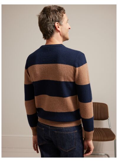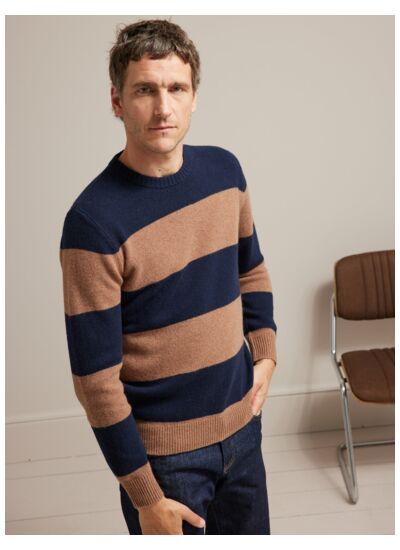 Ce pull se distingue par son motif rayé subtil qui dynamise votre look sans en faire trop. Sa laine douce et respirante assure une isolation naturelle, idéale pour affronter les journées fraîches tout en restant léger. Polyvalent, il se porte aussi bien sur un jean qu’avec un pantalon habillé, offrant une allure soignée en toutes circonstances.