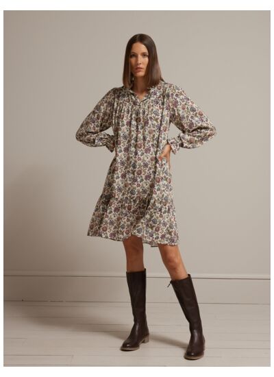 Robe 100% coton, imprimé Liberty exclusif Cyrillus. Coupe ample, manches courtes, longueur midi. Lavage en machine à 30 degrés recommandé.