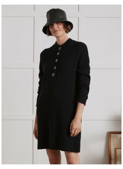 Réponse : La robe est en maille douce et extensible, conçue pour un confort optimal tout au long de la journée.