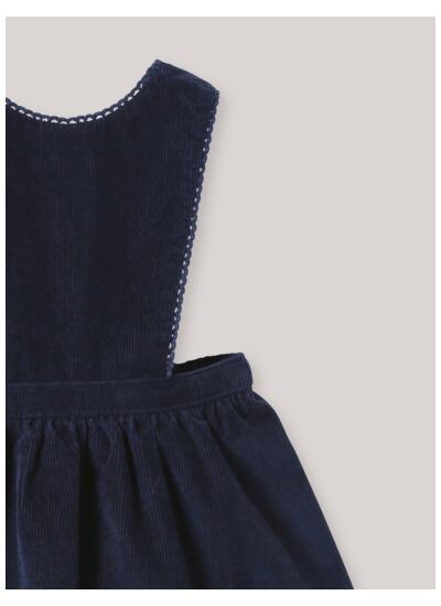 Cette robe tablier se distingue par sa coupe simple et raffinée, idéale pour les bébés actifs. Son design épuré permet une grande liberté de mouvement tout en apportant une note chic à chaque tenue. Facile à associer, elle s’adapte à toutes les occasions, du jeu à la promenade.