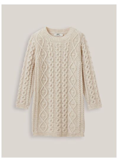 Confectionnée dans une maille douce et résistante, cette robe se distingue par son motif torsadé délicat qui apporte relief et caractère. Sa coupe droite assure une liberté de mouvement idéale pour les journées actives, tout en restant parfaitement féminine. Facile à assortir, elle accompagne aussi bien les sorties en famille que les moments de jeu.