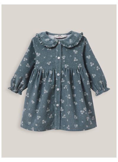 Robe en velours 100% coton, garantissant douceur et respirabilité. Coupe droite avec manches longues, fermeture par boutons pression au dos pour un habillage rapide. Disponible en plusieurs tailles adaptées aux bébés. Lavable en machine à 30 degrés.