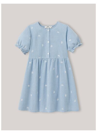 Un classique revisité pour illuminer les journées de votre fille. La robe Vichy brodée Cyrillus allie charme intemporel et détails soignés pour un look frais et élégant.