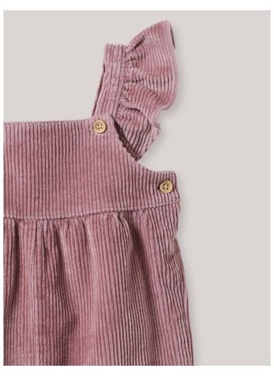Fabriquée en velours 8W, elle présente une texture côtelée douce et résistante. Disponible en plusieurs tailles bébé, elle dispose de boutons pression sur les côtés pour un habillage simplifié. Entretien facile en machine, elle conserve sa couleur et sa forme lavage après lavage.