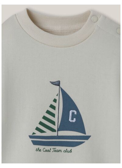 Un sweat doux et léger, pensé pour accompagner les premiers pas de bébé avec style et confort. Le Sweat Bateau Cyrillus allie simplicité et élégance pour un look intemporel.
