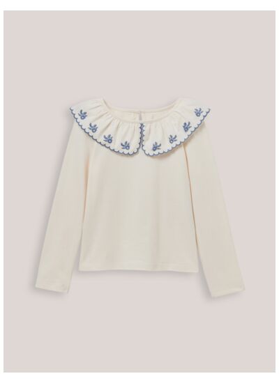 100% coton, lavable en machine, disponible en plusieurs tailles adaptées aux filles. Le col fleur est cousu avec soin pour assurer une tenue durable et un rendu soigné au fil des lavages.