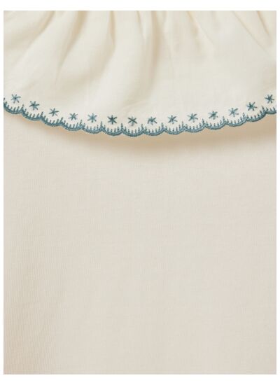 Le T-shirt Feston incarne la douceur et l’élégance au quotidien pour les filles. Une pièce essentielle qui allie simplicité et raffinement avec une touche délicate.