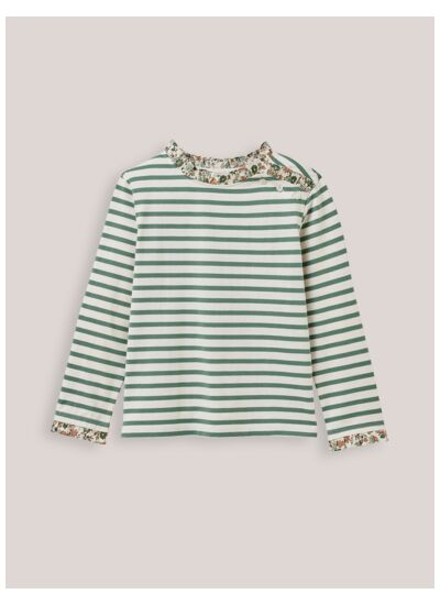 Un classique revisité pour les petites filles qui aiment l’élégance décontractée. Ce T-shirt marinière Cyrillus allie simplicité et style intemporel, parfait pour toutes les occasions.
