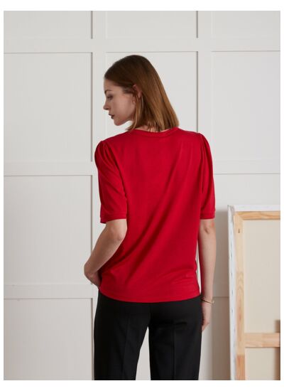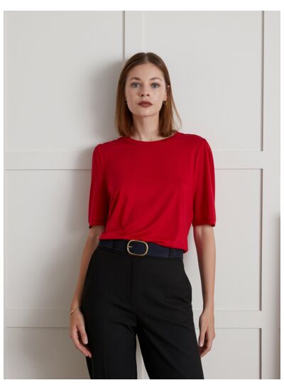 Confectionné dans un tissu léger et agréable, ce t-shirt offre une silhouette féminine grâce à ses manches courtes ballon qui apportent une touche de modernité sans sacrifier le confort. Son coloris intemporel facilite les associations avec vos bas préférés, pour un look maîtrisé en un instant.