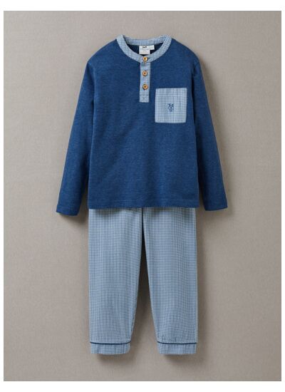 Le t-shirt est en coton doux, tandis que le pantalon est en tissu léger à carreaux vichy, avec une taille élastiquée pour un ajustement parfait. Disponible en taille garçon, saison 23H.