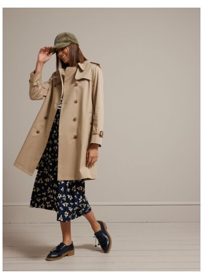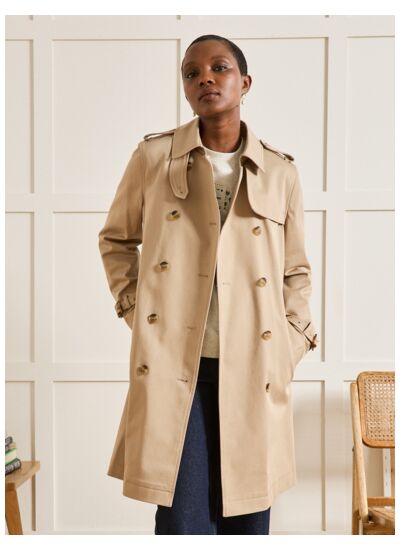 Tissu extérieur : gabardine résistante. Fermeture par boutons discrets. Ceinture à nouer pour ajuster la taille. Poches latérales pratiques. Doublure intérieure pour plus de confort.