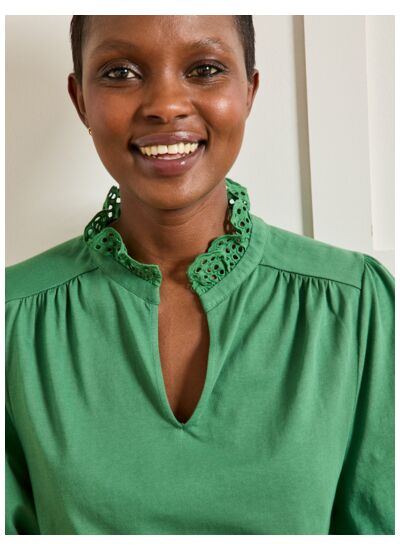 Ce t-shirt signé Cyrillus se distingue par son motif brodé délicat, apportant une touche d’originalité sans compromettre la sobriété. Sa coupe féminine épouse parfaitement les formes, tandis que la matière douce garantit une sensation agréable au quotidien. Parfait pour une tenue casual chic ou pour rehausser un look plus travaillé, il s’adapte à toutes vos envies.