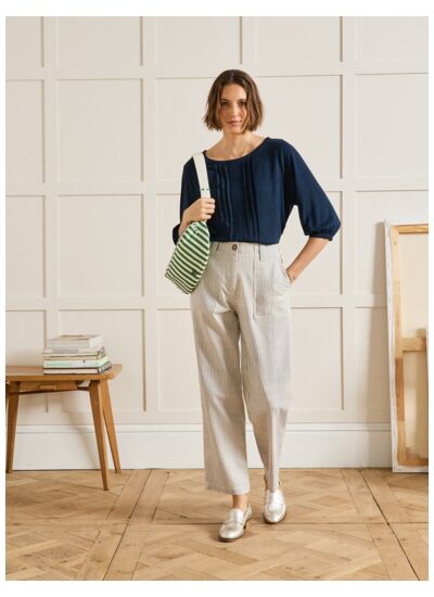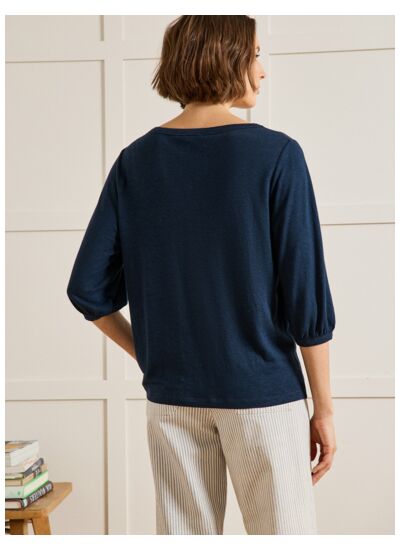 100% lin, dentelle fine sur le col et les manches, coupe ajustée, entretien facile en machine à 30 degrés.