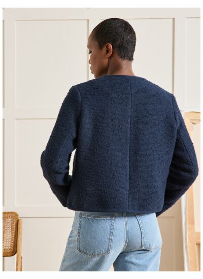 Composée principalement de tweed, elle présente une coupe cintrée, manches longues, et fermeture boutonnée. Entretien facile, idéale pour la saison 25. Disponible en plusieurs tailles pour un ajustement parfait.