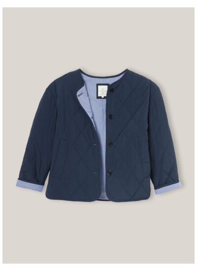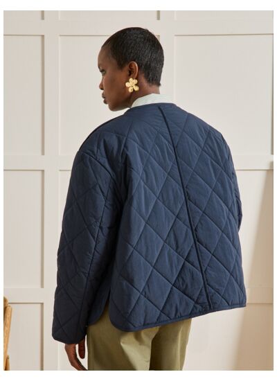 Confectionnée dans un tissu matelassé de qualité, cette veste dispose d’une fermeture zippée devant, de poches latérales pratiques et d’une coupe cintrée. Son garnissage assure chaleur et légèreté, idéale pour la saison hivernale.