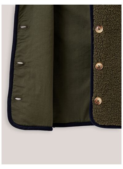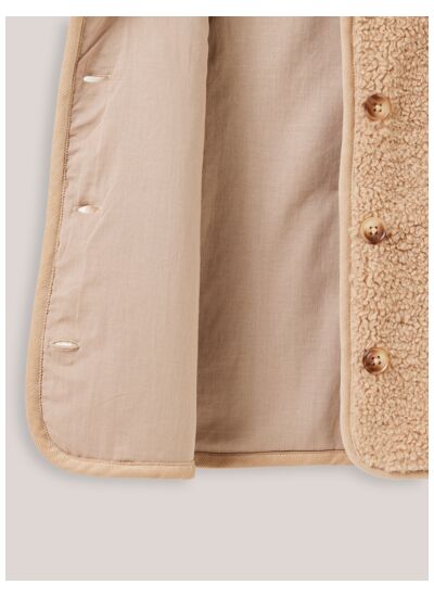 Fabriquée par Cyrillus, cette veste Sherpa est composée d’un tissu 100 % polyester, avec une doublure intérieure en sherpa doux. Elle se ferme par une fermeture éclair solide et dispose de poches latérales. Entretien facile en machine, elle conserve sa forme et sa douceur lavage après lavage.