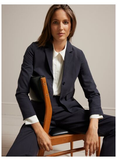 Réponse : Sa coupe ajustée est pensée pour valoriser la silhouette féminine tout en offrant un bon confort de mouvement.