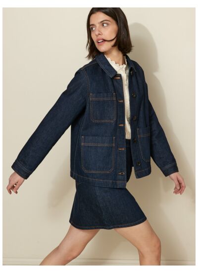Conçue pour accompagner vos journées actives, cette veste en denim offre une coupe ajustée qui souligne la silhouette sans contraindre. Son bleu indigo profond et ses finitions soignées apportent une touche moderne à un classique intemporel. Facile à associer, elle se porte aussi bien sur une robe fluide que sur un jean pour un look monochrome maîtrisé.