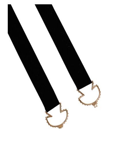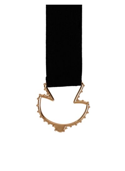 • Ceinture élastiquée à fermoir gravé s'ouvrant devant