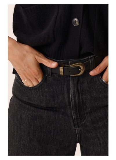 Adoptez la tendance western en touche subtile avec la ceinture Nerriette. Fine et epurée, elle est accessoirisée d'une boucle gravée en métal doré.