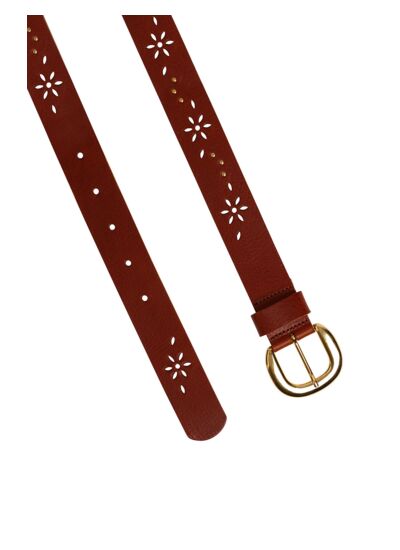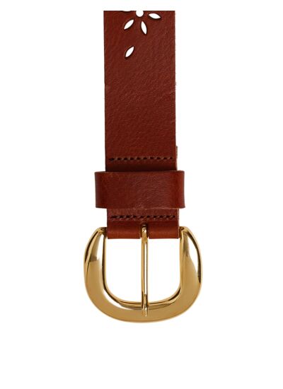 Parce qu'elle fait souvent la différence pour égayer un look et finaliser un look, la ceinture Neva est déclinée en cuir perforé de fleurs.