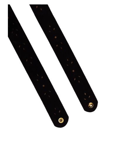 Bohème chic, la ceinture Nevada mêle l'élégance d'un coloris intemporel à la délicatesse d'un motif doré. Imaginée pour sublimer une robe ou un gilet, elle finalisera avec originalité vos looks de saison.