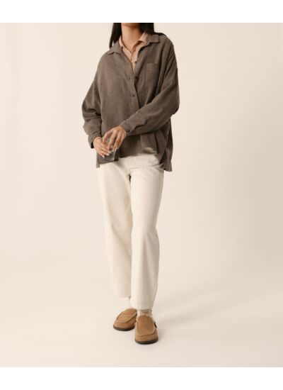 Tombé impeccable, coupe chic décontractée, la chemise Vanille a tout pour elle. Modernisée par un volume ample et une fine rayure en lurex, vous allez adorer porter cette chemise oversize en viscose et laine durant l'automne-hiver.