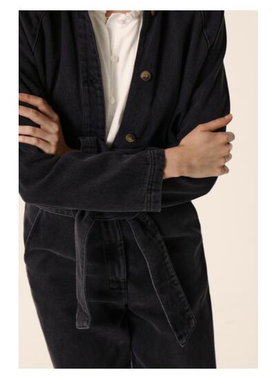 Toujours aussi prisée, sans cesse réinventée, la combinaison en jean est un atout mode incontestable. Revisitée en denim gris, coupe droite et ceinturée pour une silhouette féminisée, Loustik se porte aussi bien avec des hauts talons que des baskets.