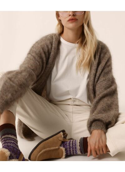 • Gilet en maille réalisé en fil italien du groupe "Moelleux" en Kid Mohair et laine mérinos certifiée sans Mulesing. Fil gonflant, chaud, très doux et duveteux.