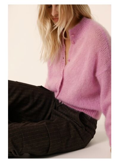 Le gilet boutonné Chidonie en kid mohair prend la forme d'un petit blouson en maille avec son col montant. En kid mohair et manches bouffantes pour une silhouette modernisée, ce modèle chaud et passe-partout s'accorde avec tout.