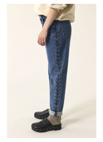 Avec sa coupe décontractée ultra flatteuse qui n'a désormais plus rien à prouver, le jean mom Louisetta se veut encore plus original et rétro avec sa broderie végétale sur le côté.