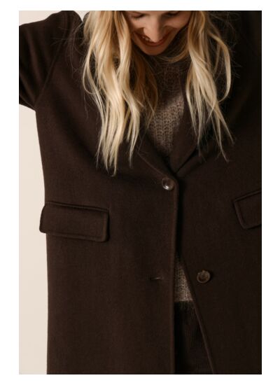 Exit le classique manteau noir, cet automne on se tourne vers des coloris marron ou rose avec le manteau long Neron. En laine douce et enveloppante, sa coupe chic et structurée d'un col tailleur traversera les années sans passer de mode.