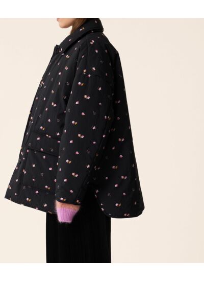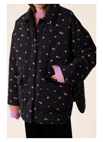 Coupe droite oversize et base façon liquette pour un look surchemise, la parka Yakitori s'inspire de la doudoune avec son rembourrage léger chaud et couvrant. Féminisée d'un motif floral, ce classique du vestiaire remixé vous accompagnera dès l'automne.