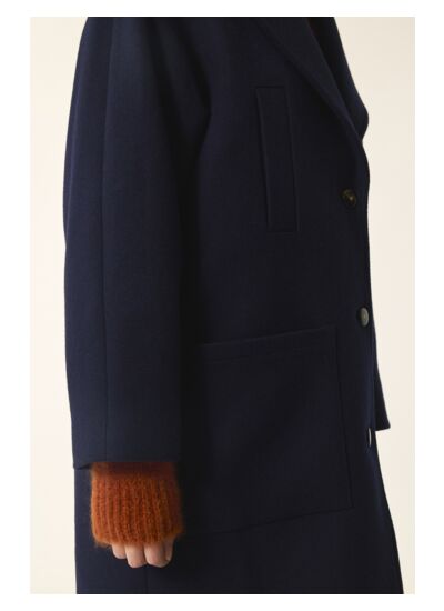 Incontournable du vestiaire d'hiver, le manteau Yasmine opte pour la modernité d'une coupe oversize. Casual chic avec ses poches plaquées et son large col tailleur, son volume XL vous permettra de porter vos pulls et gilets les plus douillets.