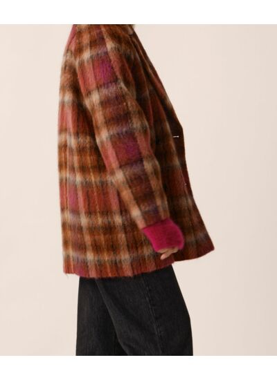 • Imprimé exclusif Des Petits Hauts "Tana rose", des carreaux oversize façon tartan rose et marron orangé