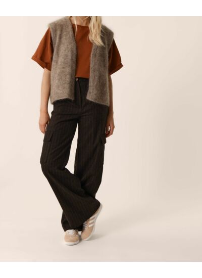 • Rayure exclusive Des Petits Hauts "Asali" : de fines rayures brun chaud sur un fond gris anthracite