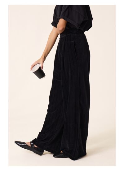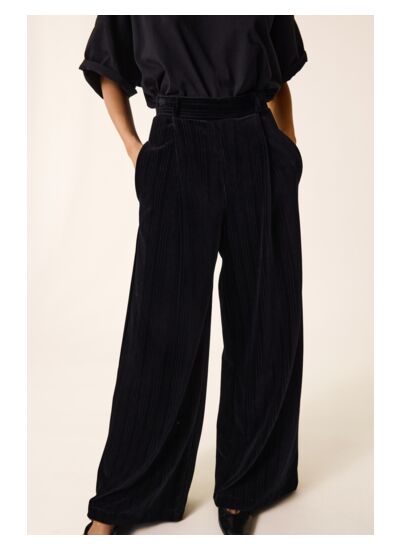 Une silhouette au summum du chic avec le pantalon large en velours Zofia. Coupe droite et jambes larges, des plis à la taille et une fausse braguette structurent ce modèle impeccable à porter avec la veste coordonnée pour vos futures soirées.
