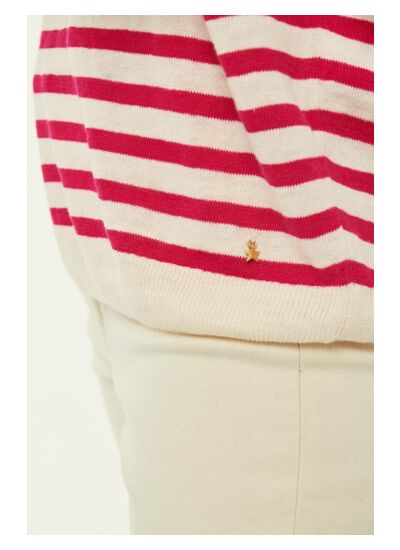 • Pull marinière réalisé en Lin français 100% biologique et certifié OCS. Ce fil présente une grande résistance ainsi qu'une bonne isolation aux changements de température.
