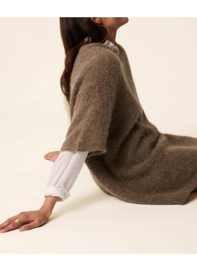 Anatole, c'est le pull oversize dans lequel vous aimerez vous lover cette saison. Manches larges et col rond, accordé à un pantalon uni ou à motif, sa longueur permettra de le détourner en une robe décontractée.