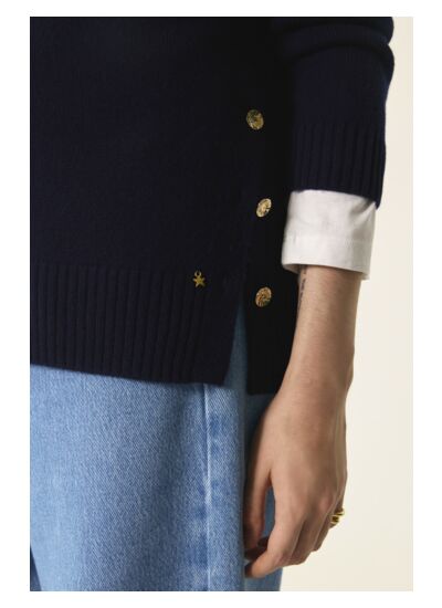 Avec ses boutons dorés pour un look navy chic et sa declinaison de coloris intemporels, le pull Arigato est décliné en laine mérinos aussi douce que du cachemire. Porté avec un jean ou un pantalon habillé, il trouvera très vite sa place dans votre dressing cet hiver.