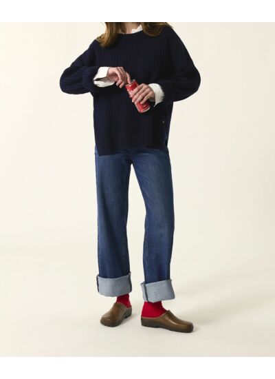 En laine mérinos douce et cosy, le pull droit Aristou avec ses manches évasées et sa maille côtelée se hissera très vite au rang de petit basique que vous aimerez porter et reporter saison après saison.