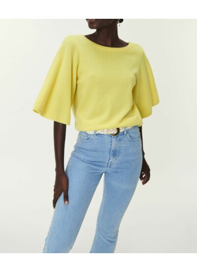 • Pull jaune réalisé en laine Mérinos extrafine provenant d'Australie. Ce fil a la particularité d'être fin, doux et chaud au porté.