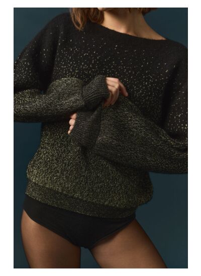 Le pull femme transporte dans un univers cosmique et poétique. Habillé de touches métallisées qu'on aime tant retrouver en fin d'année, il fera briller vos looks de fête.